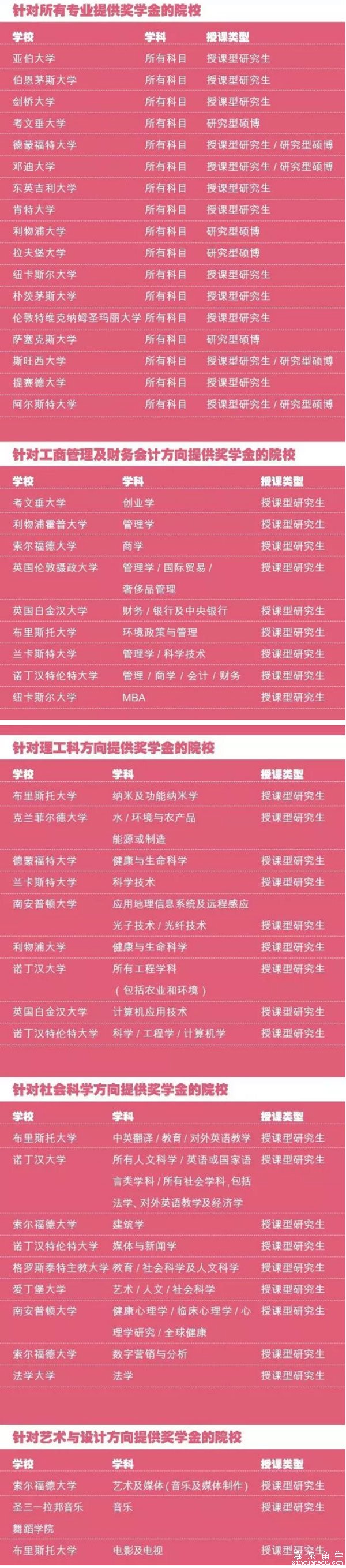 包括英格兰、苏格兰、威尔士和北爱尔兰等在内的四个地区31所英国高校(G5名校,罗素大学集团等系数在内)参与了这项奖学金计划。