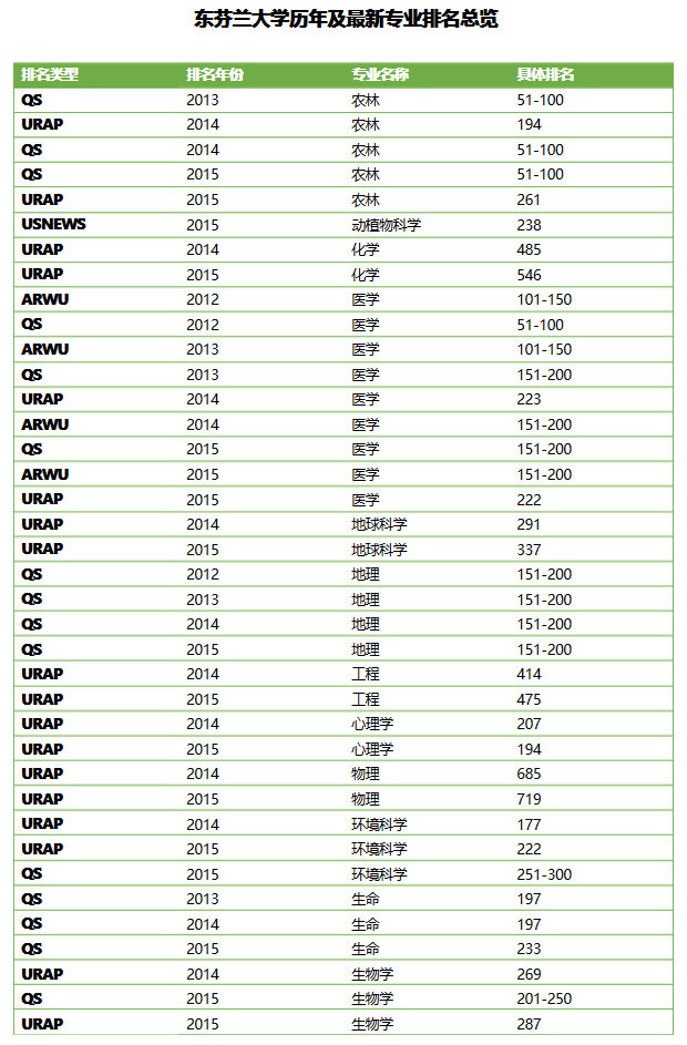 东芬兰大学历年及最新专业排名总览