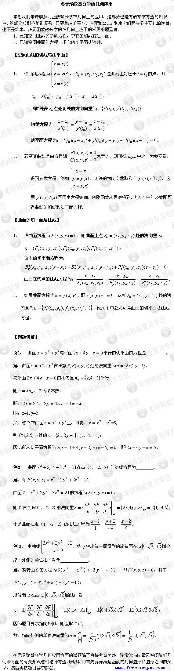 考研数学复习指导:多元函数微分学的几何应用