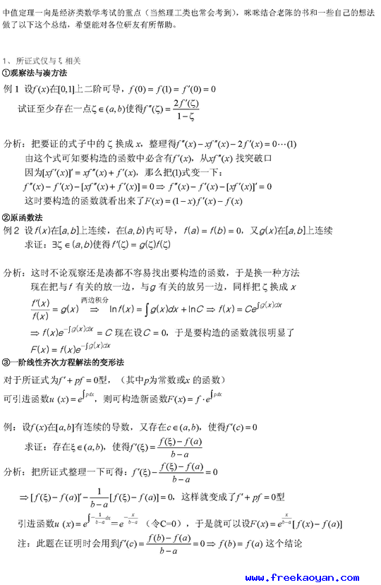 经济列数学考试的重点 考研数学中值定理总结1