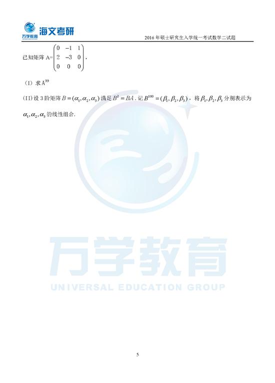 2016年考研初试于12月26日举行,数学(二)已结束考试,特整理真题及参考答案整理如下,供考生参考。