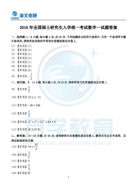 2016年考研初试于12月26日举行,数学(一)已结束考试,特数学真题整理如下,供考生参考。