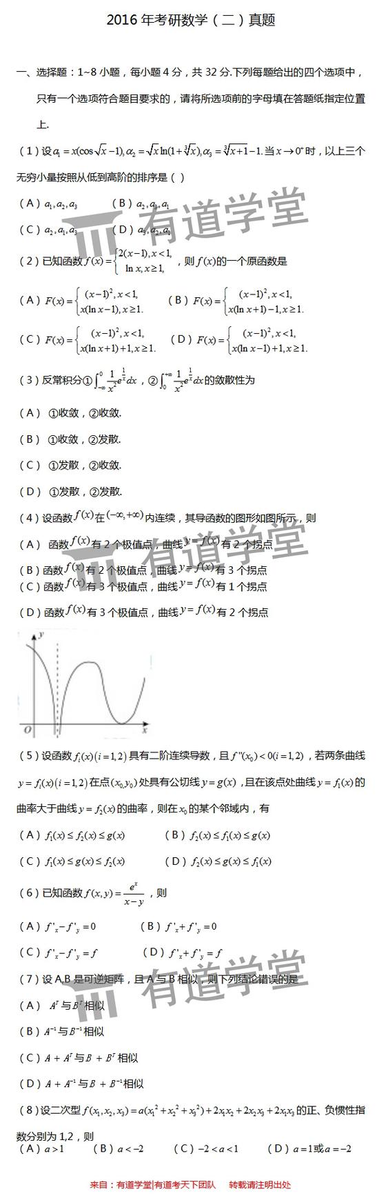 2016年考研初试于12月26日举行,数学(二)已结束考试,特整理真题及参考答案整理如下,供考生参考。【来源:“有道学堂有道考天下”】