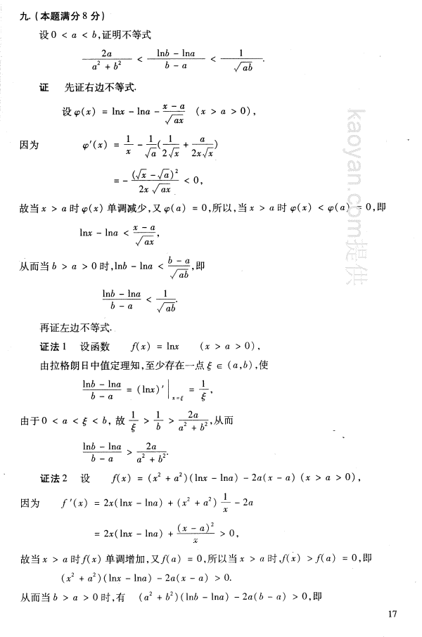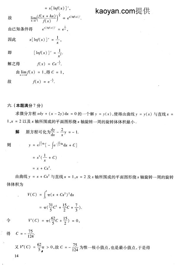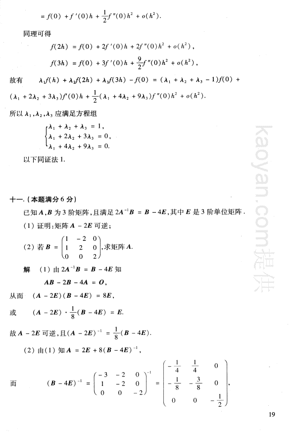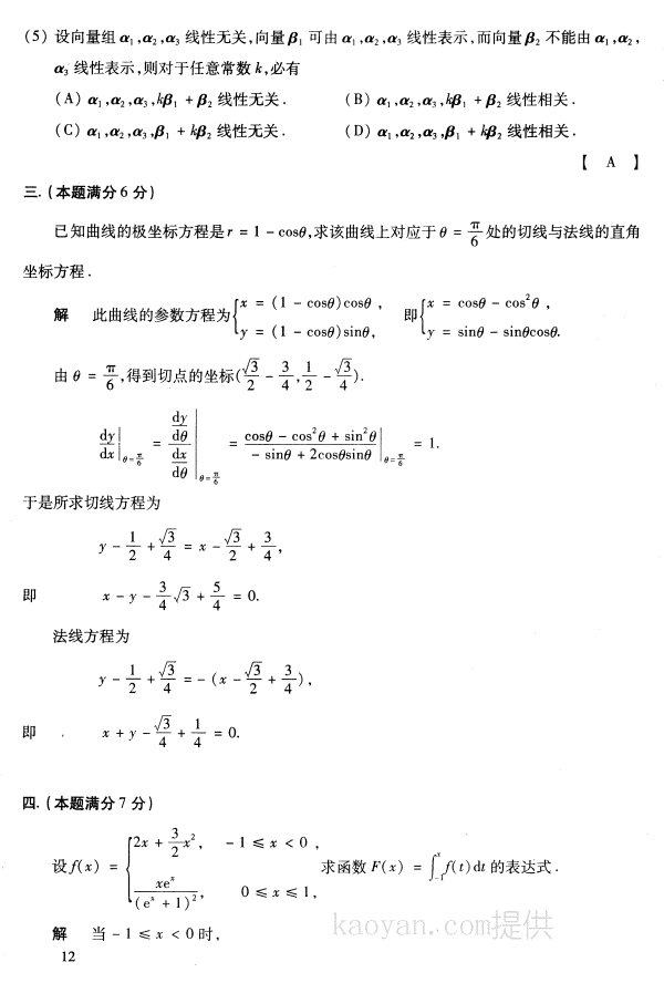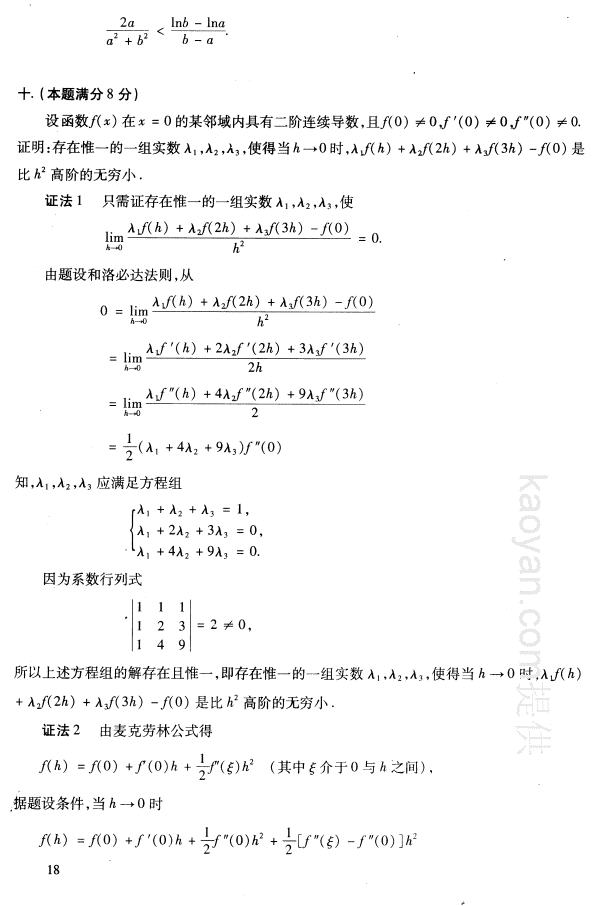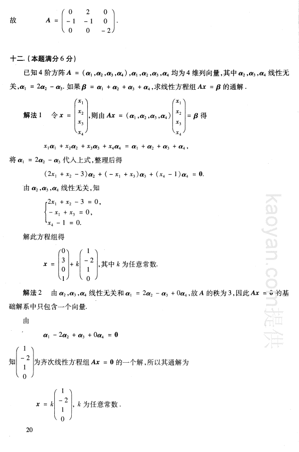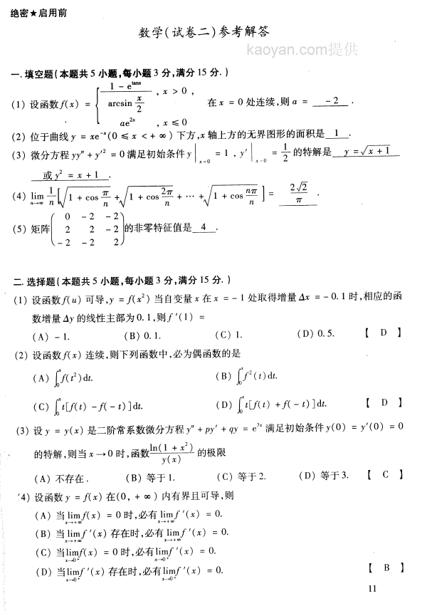 2002年全国硕士研究生入学考试数学二试卷附详细答案