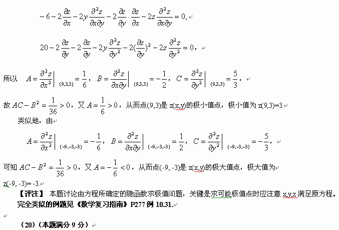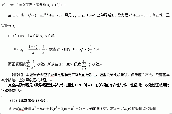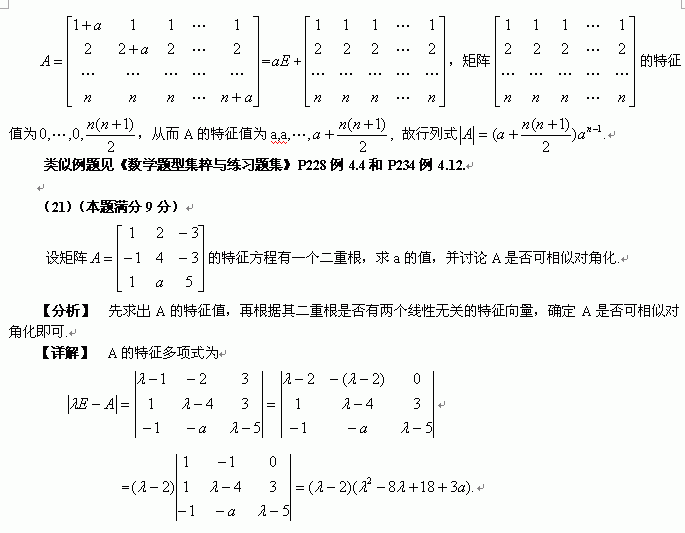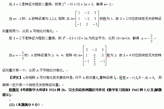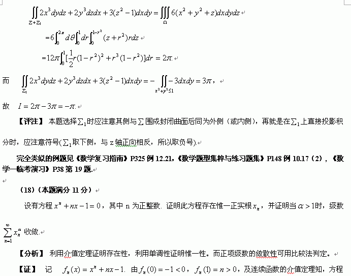 2004年全国硕士研究生入学考试数学一试卷附详细评注下