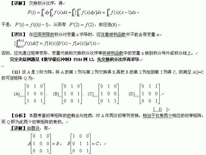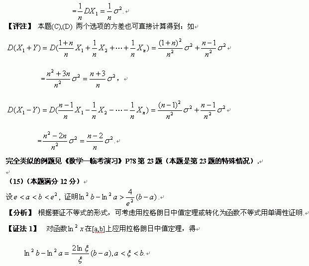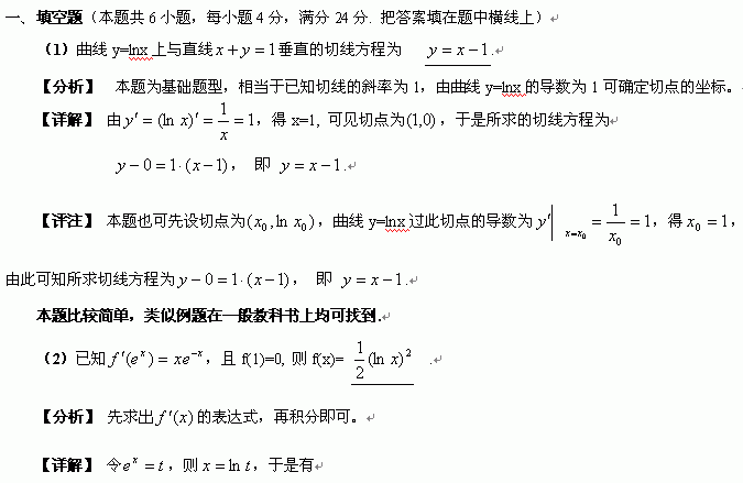 2004年全国硕士研究生入学考试数学一试卷附详细评注上