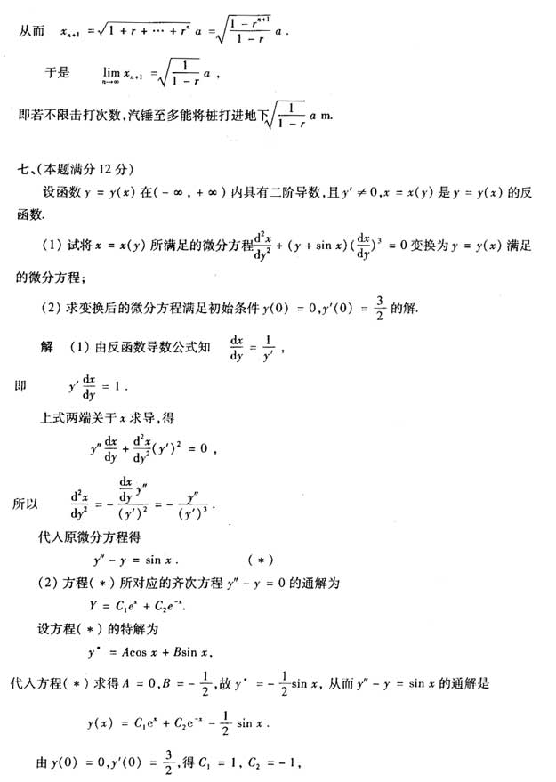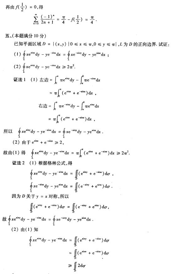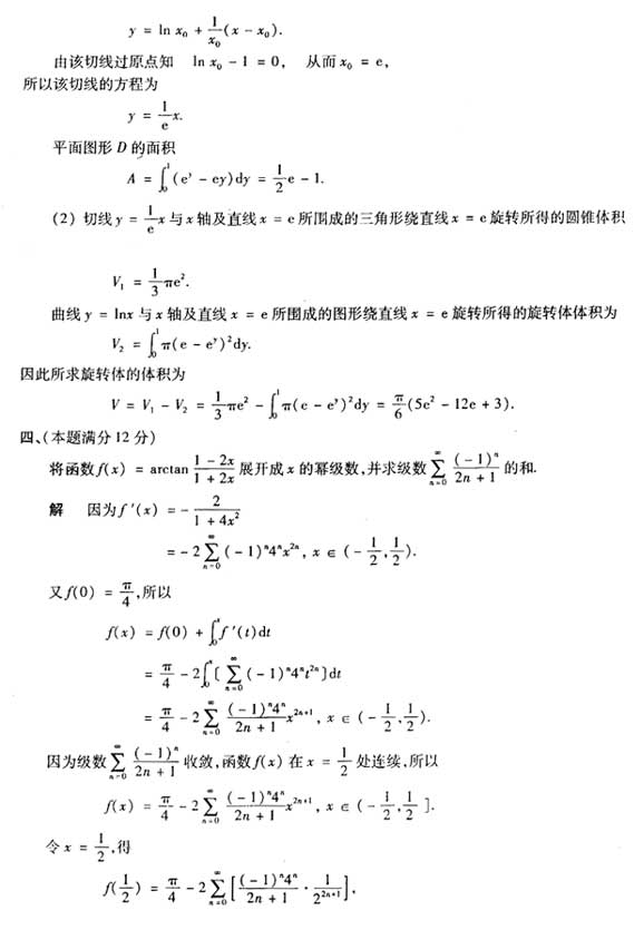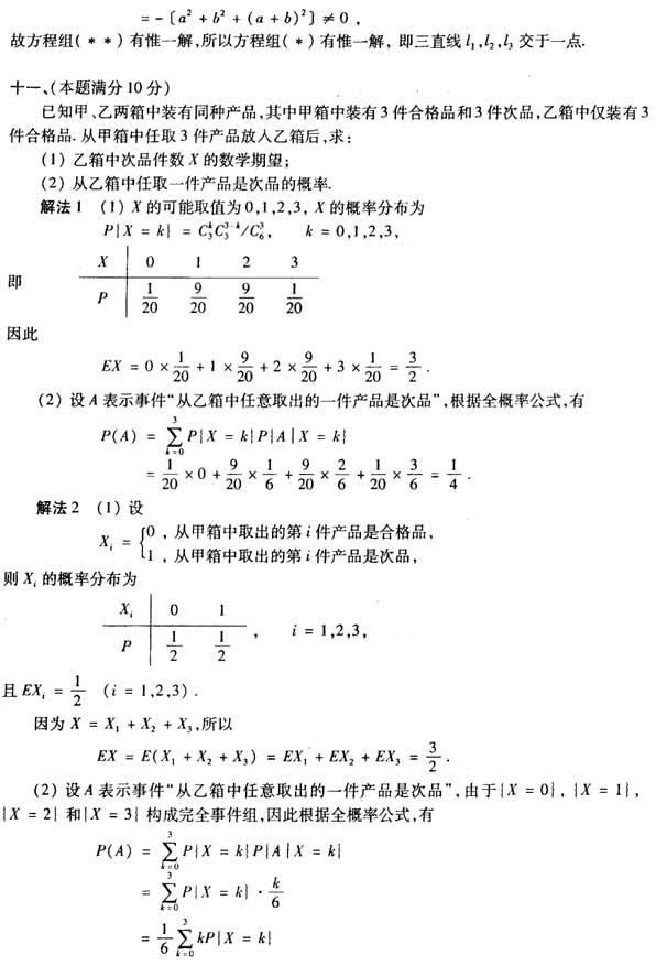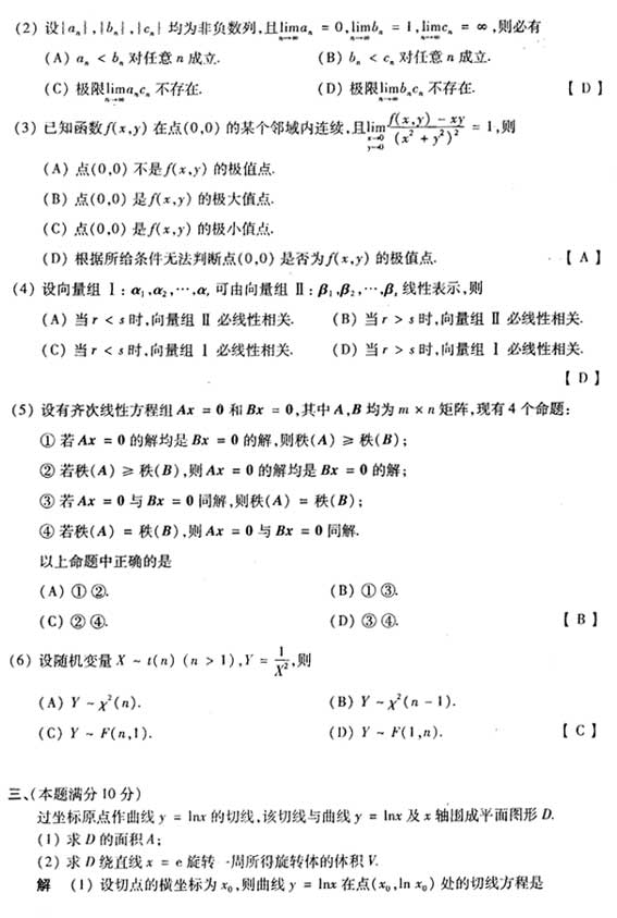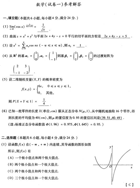 2003年全国硕士研究生入学考试数学一试卷附标准答案