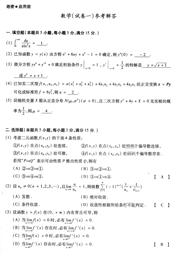 四.为了阅卷方便,本参考答案中推导步骤写得较为详细,考生在解题过程中,允许合理省略非关键性的推导步骤。