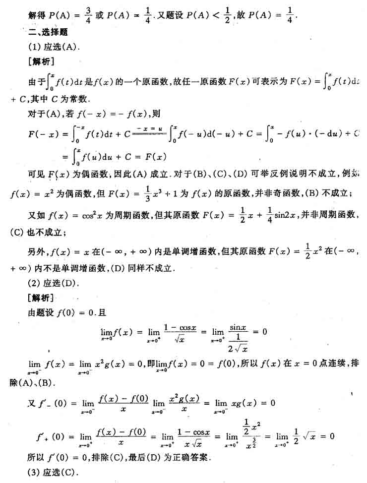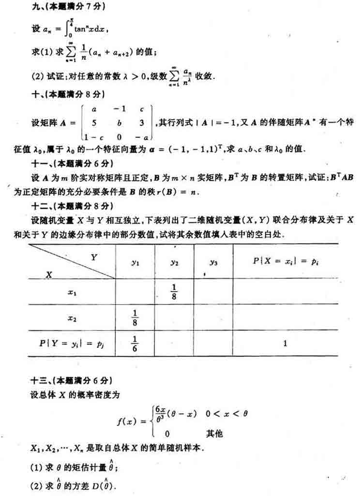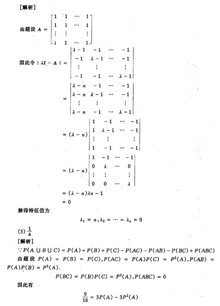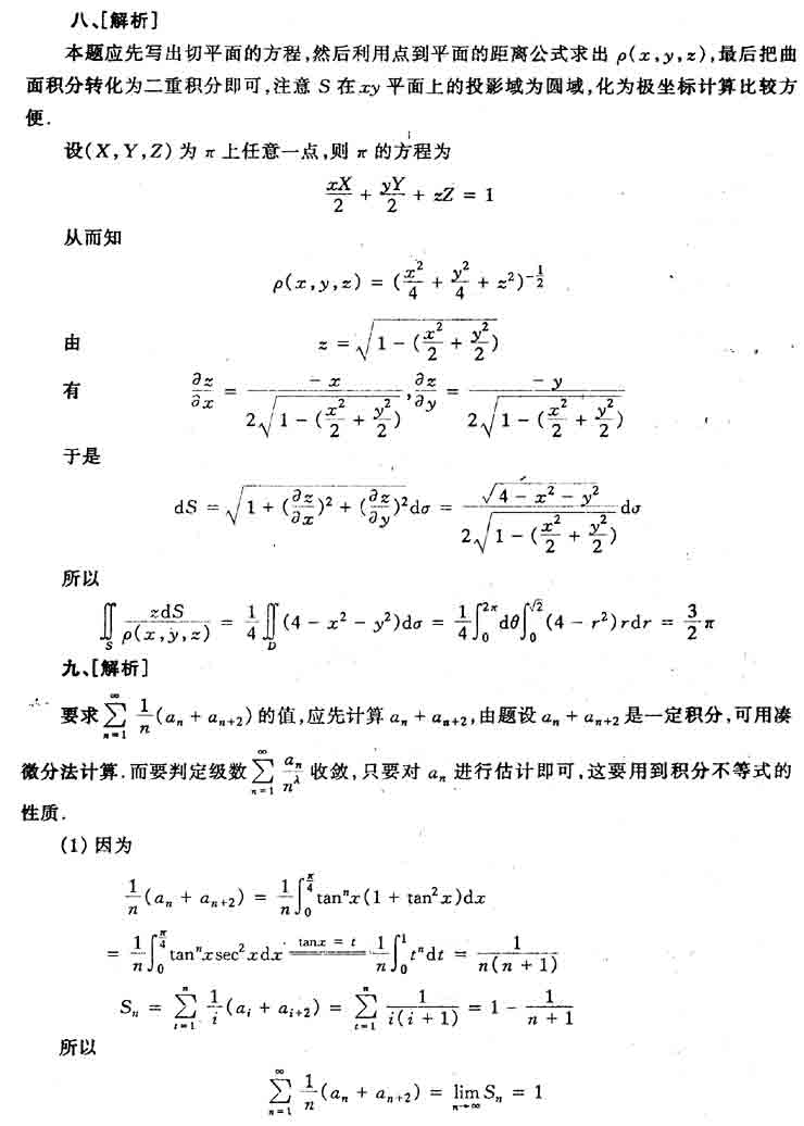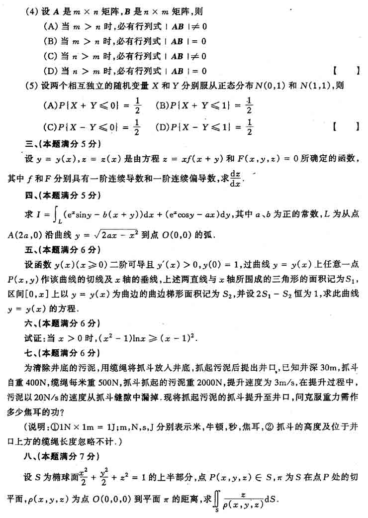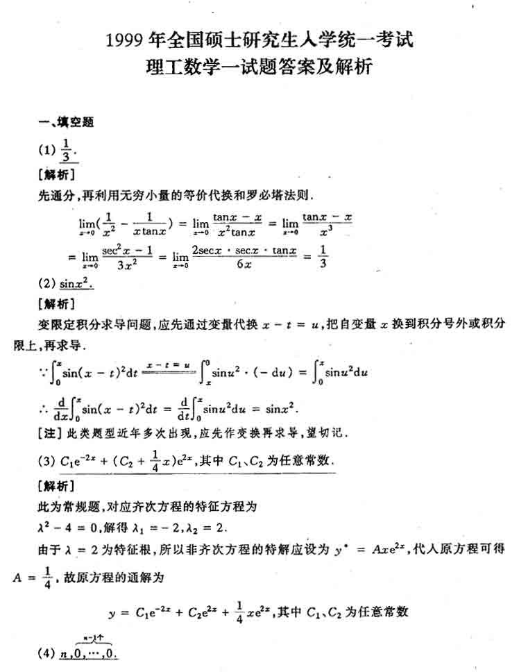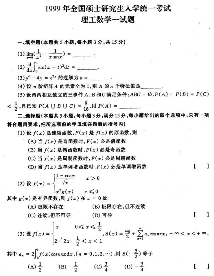 1999年全国硕士研究生入学考试数学一试卷附标准答案