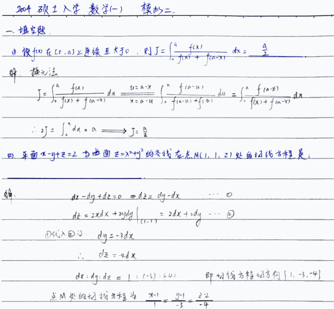 2004年合肥工业大学冲刺辅导模拟试卷数学一试题模拟二详细答案