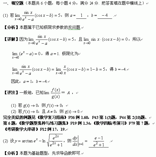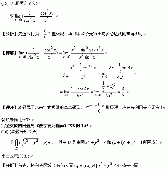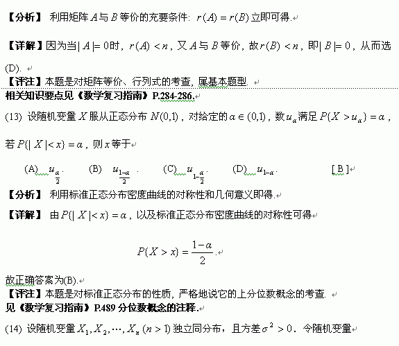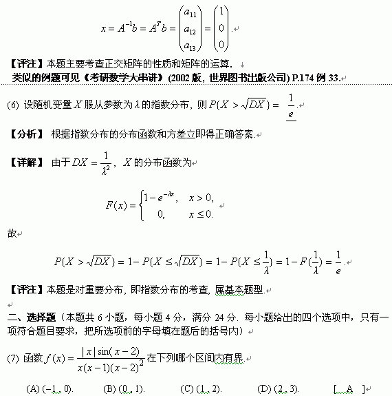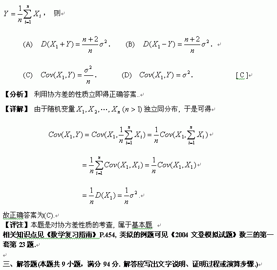 2004年全国硕士研究生入学考试数学四试卷附详细评注上