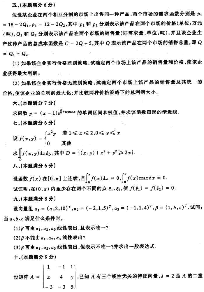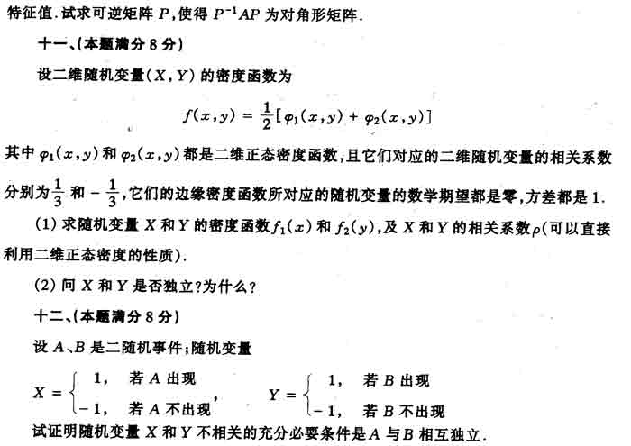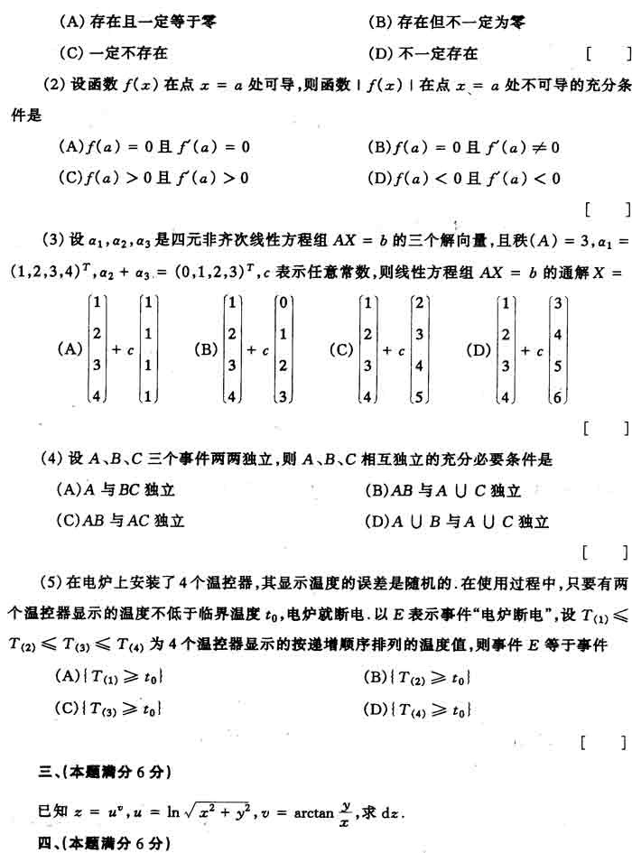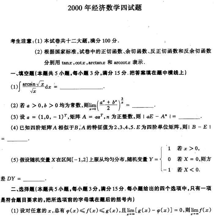 2000年全国硕士研究生入学考试数学四试卷