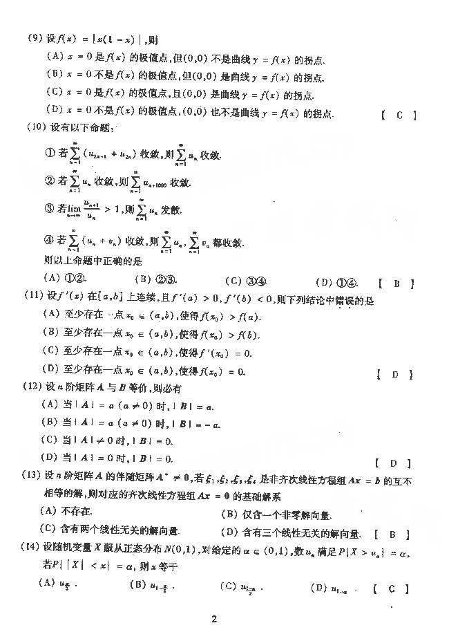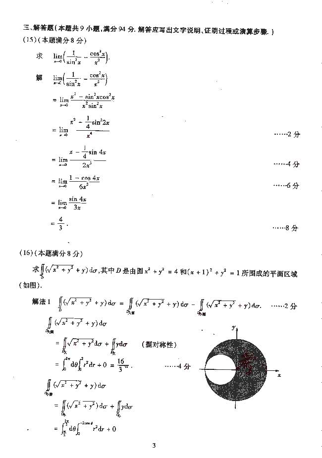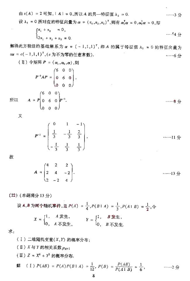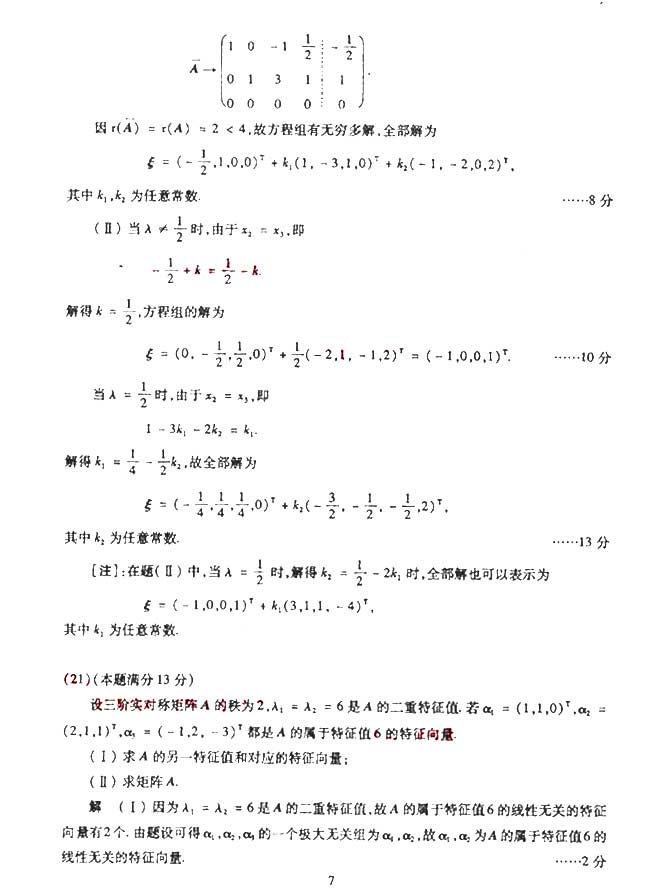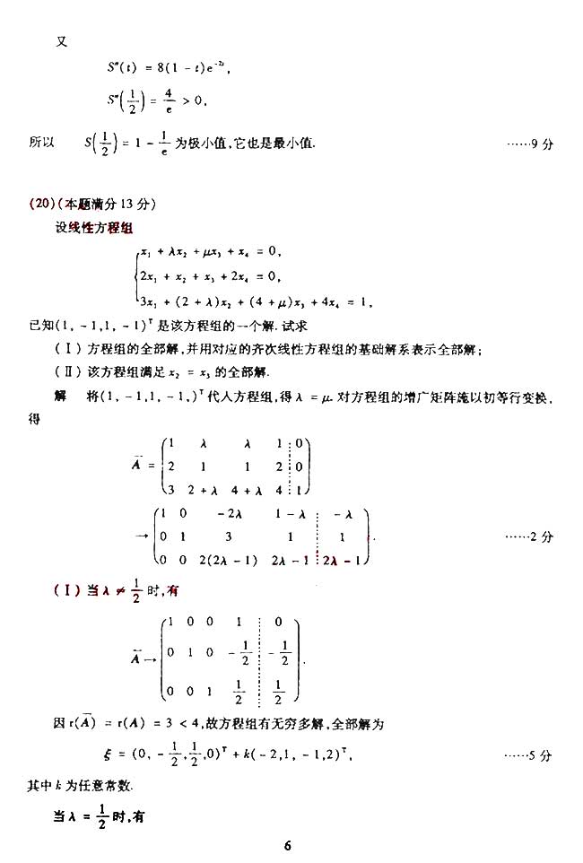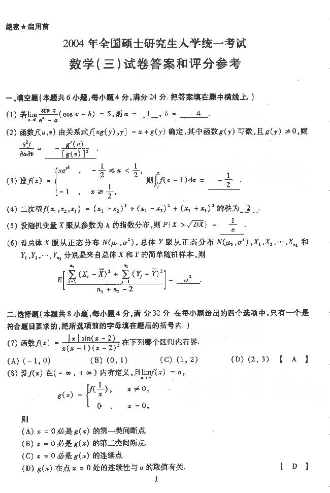 2004年全国硕士研究生入学考试数学三试卷附详细答案