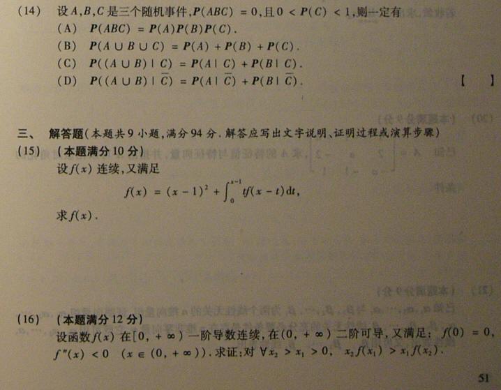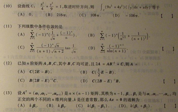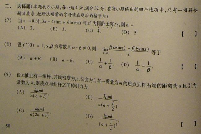 李永乐全真模拟经典400题(理工类)模拟试题九