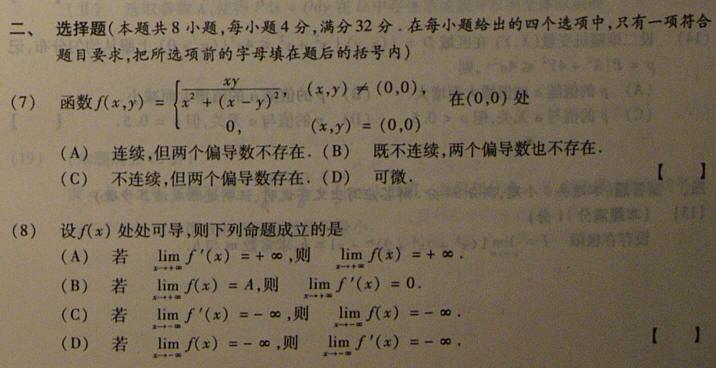 李永乐全真模拟经典400题(理工类)模拟试题三