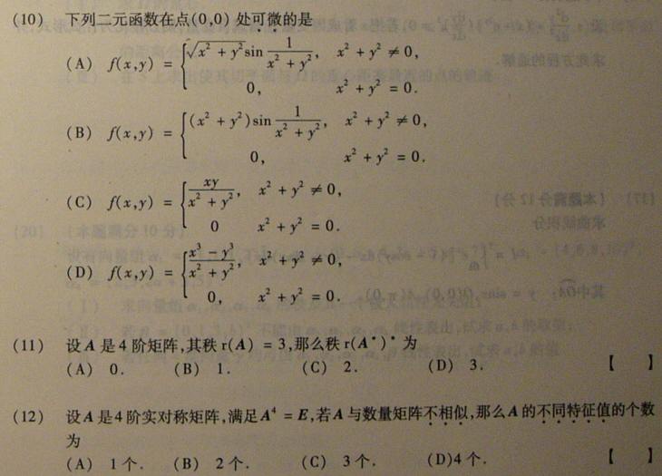 李永乐全真模拟经典400题(理工类)模拟试题二
