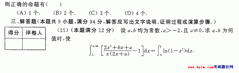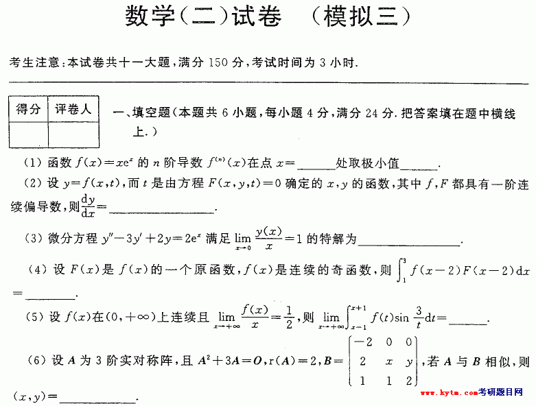 2005年合肥工业大学数学模拟试题数学二试题第三集