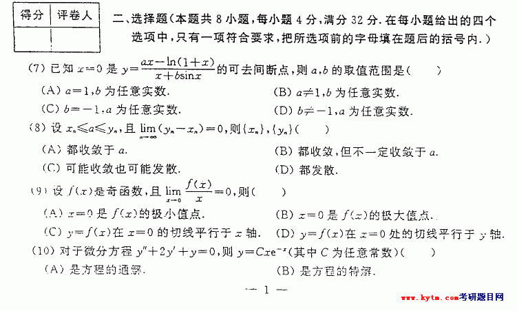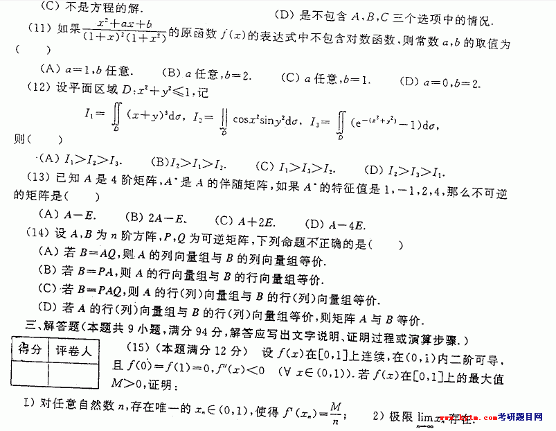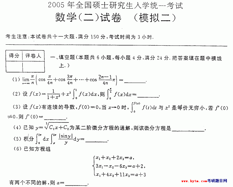 2005年合肥工业大学数学模拟试题数学二试题第二集