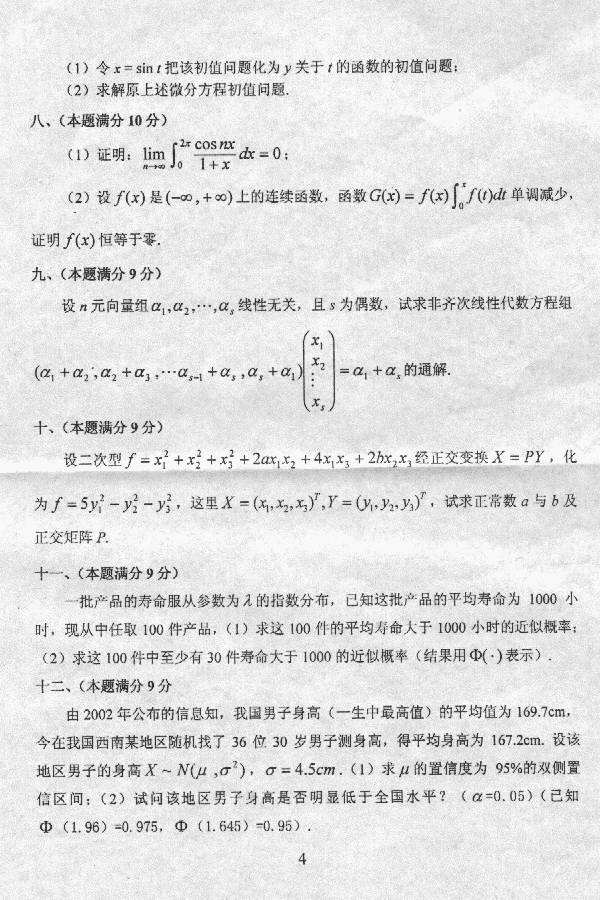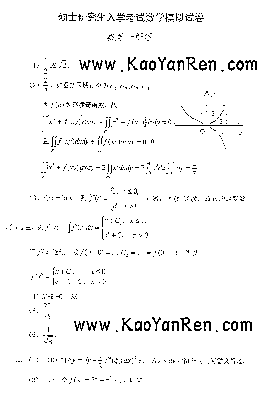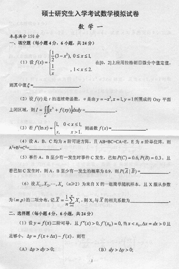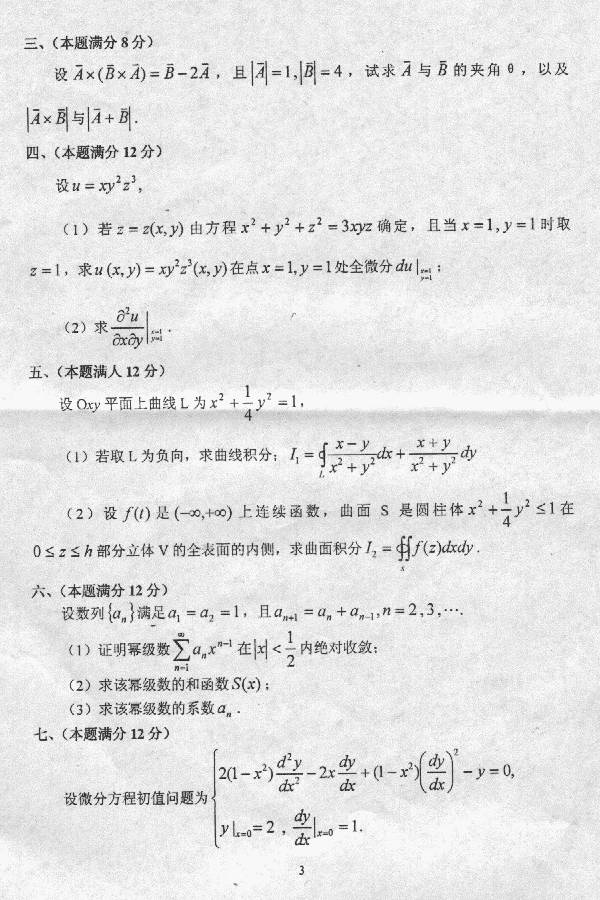 2003年合肥工业大学数学模拟试题数学一试题带答案