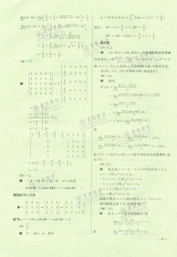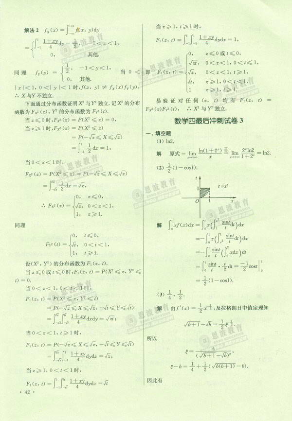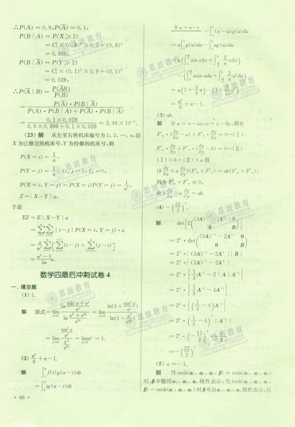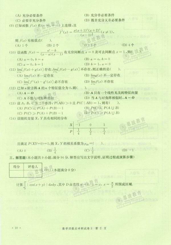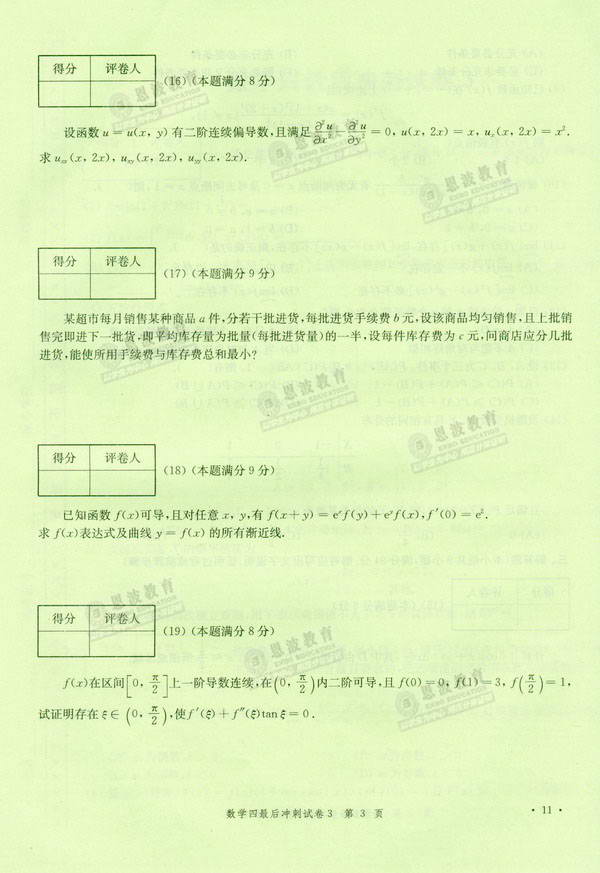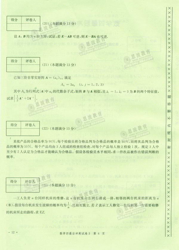 恩波数学辅导班冲刺模拟试卷数学四最后冲刺试卷3