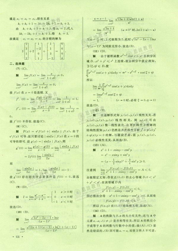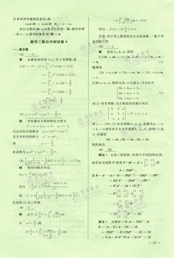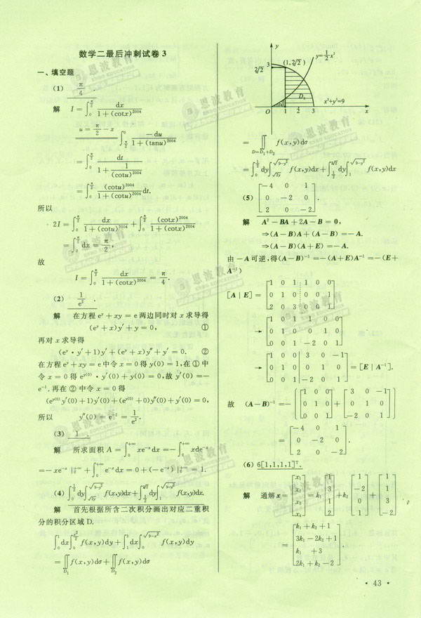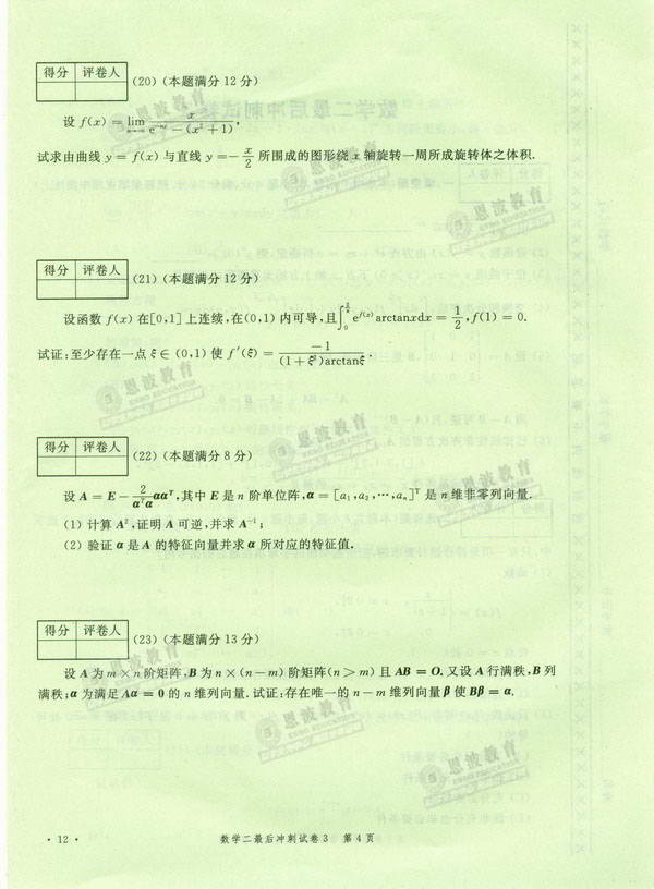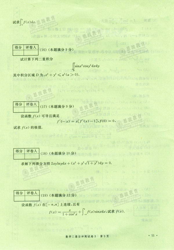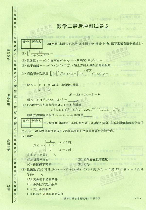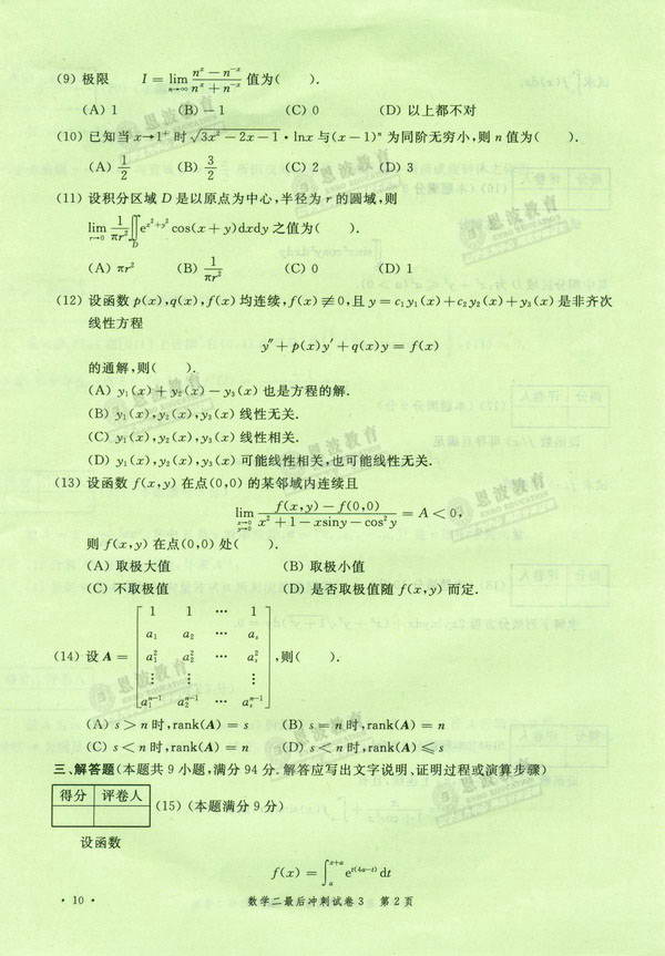 恩波数学辅导班冲刺模拟试卷数学二最后冲刺试卷3