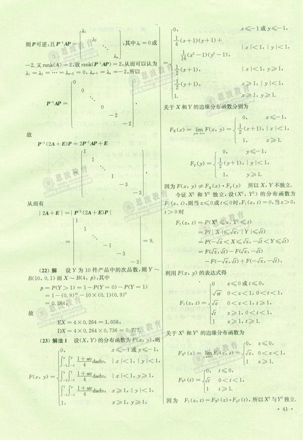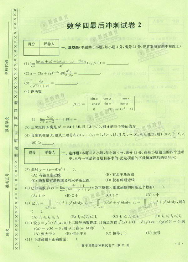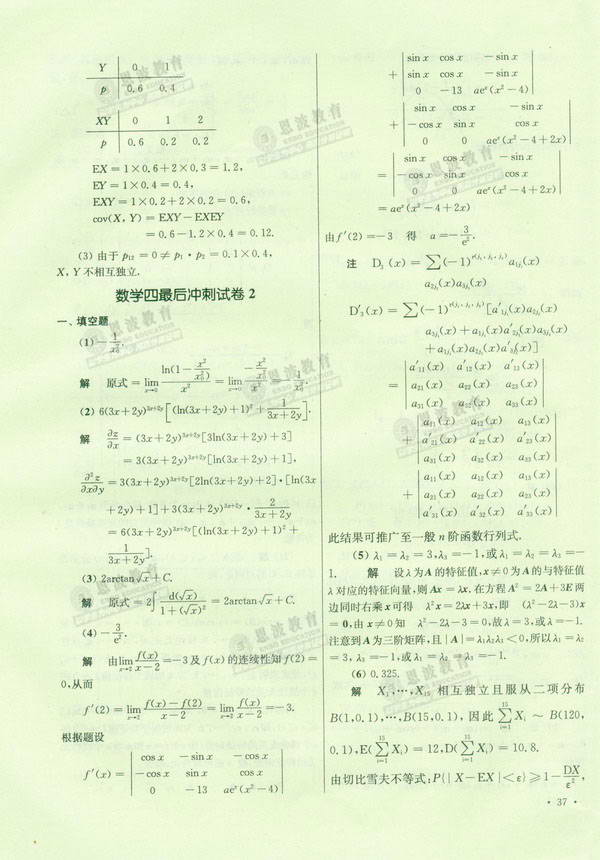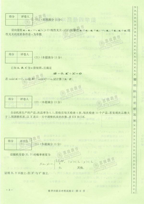 恩波数学辅导班冲刺模拟试卷数学四最后冲刺试卷2