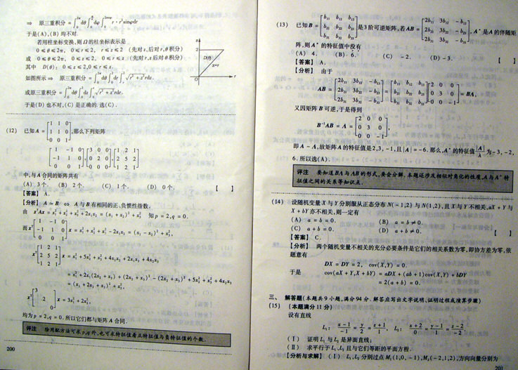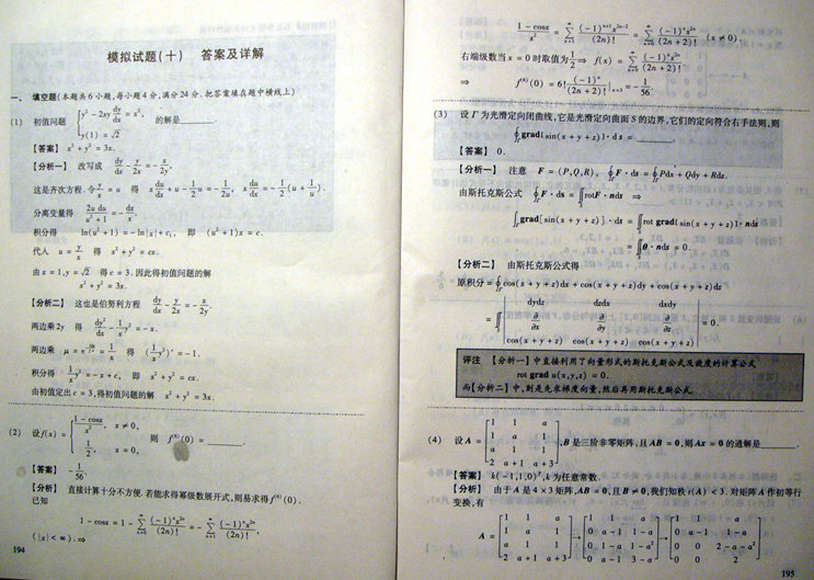 李永乐全真模拟经典400题(理工类)模拟试题十答案
