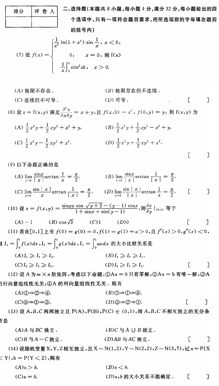 2006年文登学校考研数学最新模拟试卷(数学四)