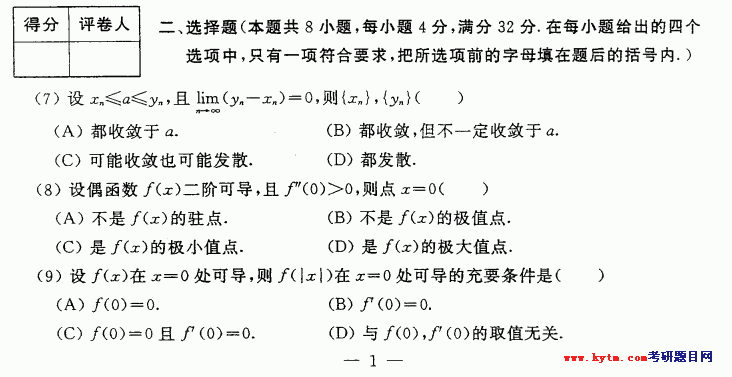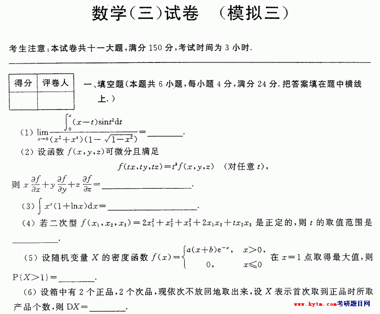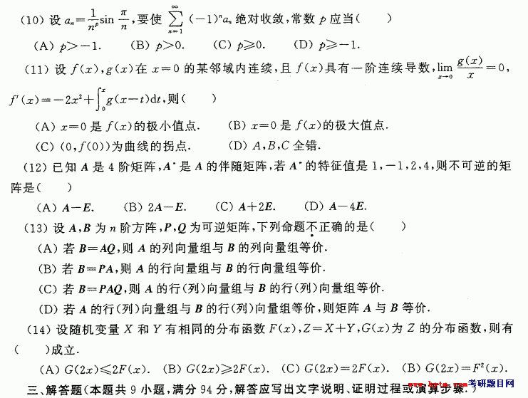 2005年合肥工业大学数学模拟试题数学三试题第三集