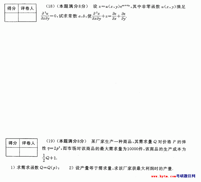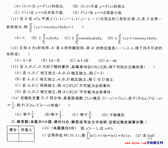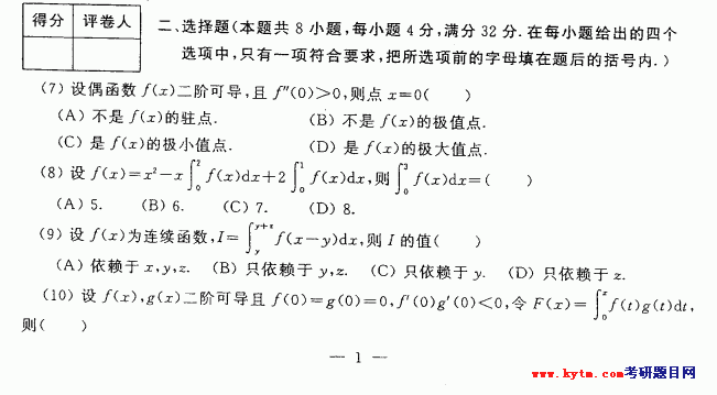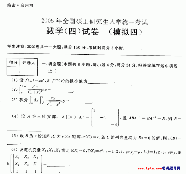 2005年合肥工业大学数学模拟试题数学四试题第四集