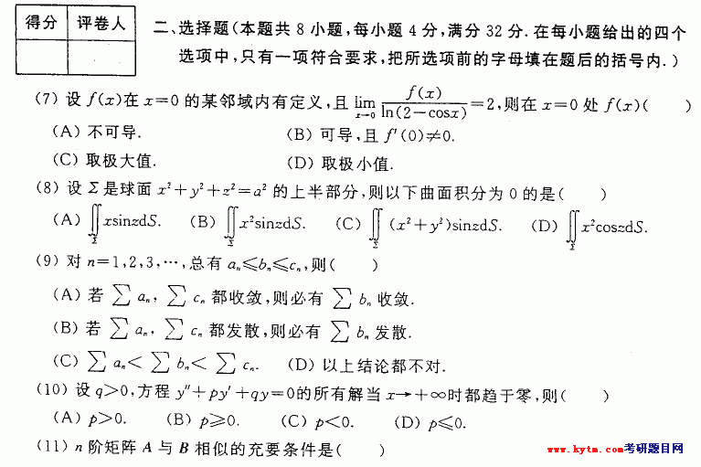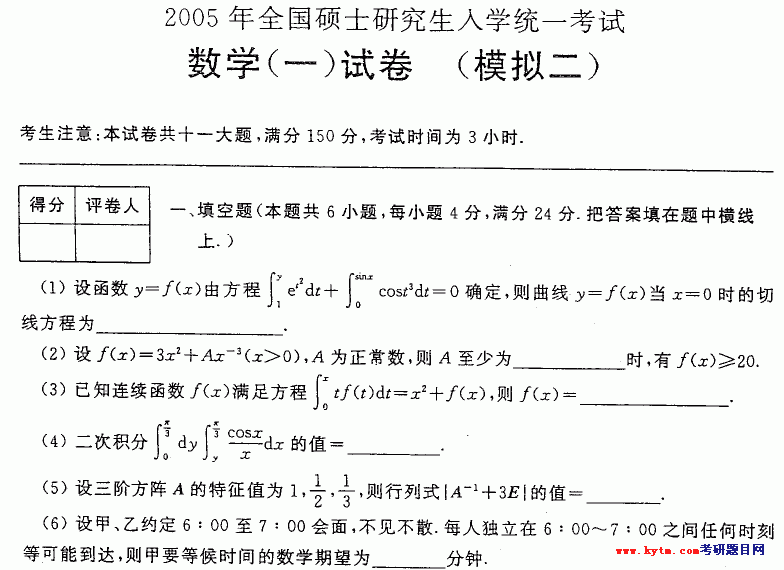 2005年合肥工业大学数学模拟试题数学一试题第二集