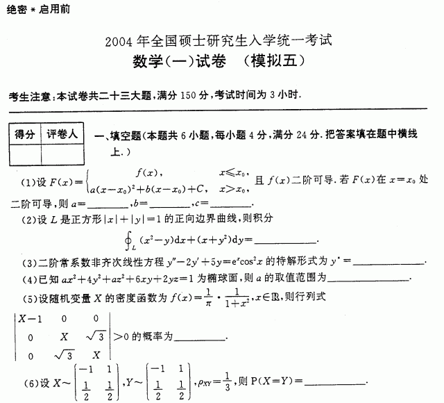 2004年合肥工业大学冲刺辅导模拟试卷数学一试题模拟五