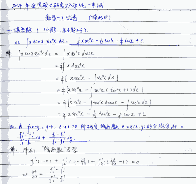 2004年合肥工业大学冲刺辅导模拟试卷数学一试题模拟四详细答案
