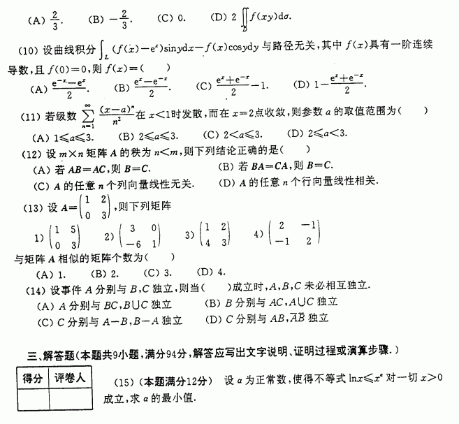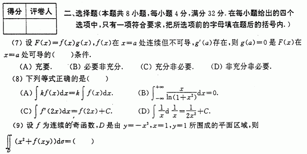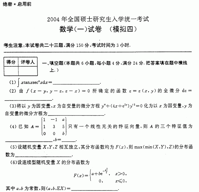 2004年合肥工业大学冲刺辅导模拟试卷数学一试题模拟四