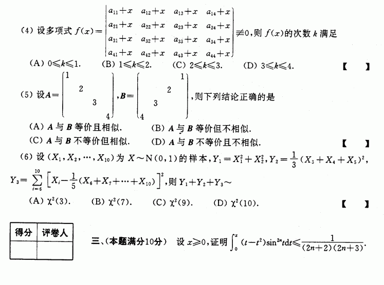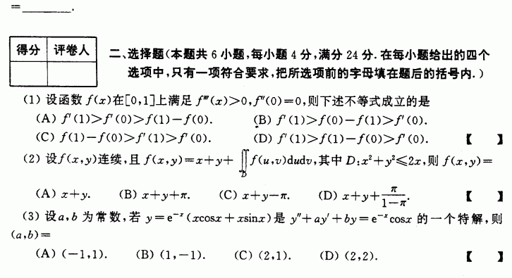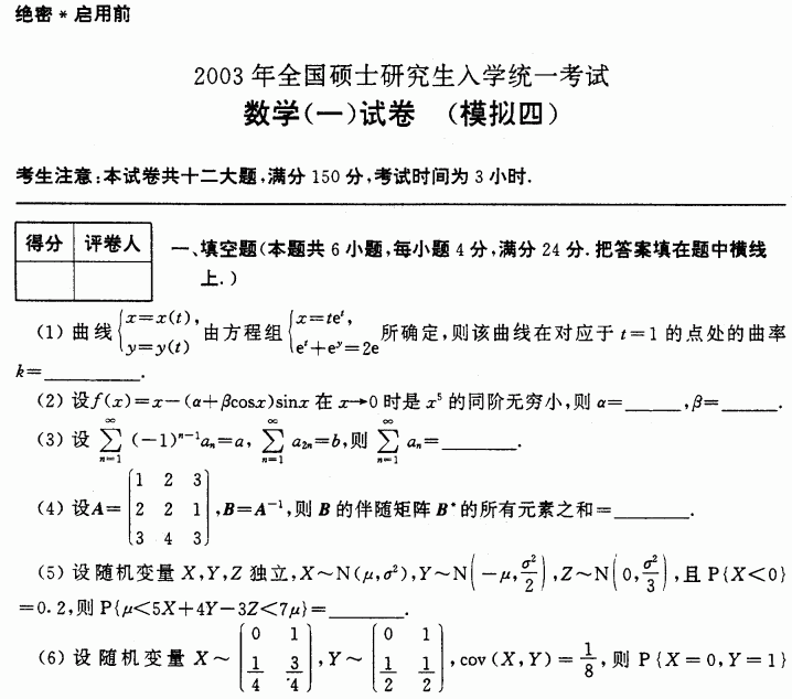 2003年合肥工业大学冲刺辅导模拟试卷数学一试题模拟四