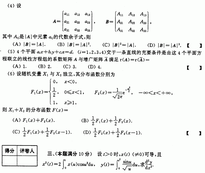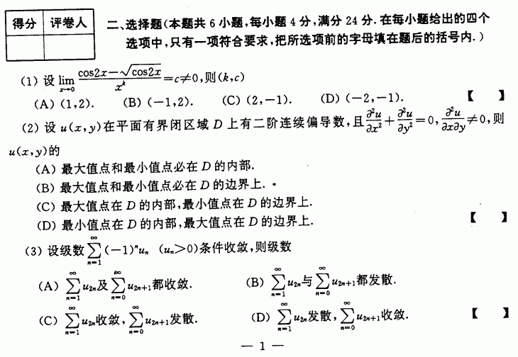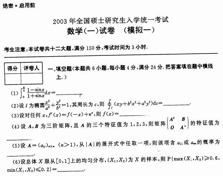 2003年合肥工业大学冲刺辅导模拟试卷数学一试题模拟一
