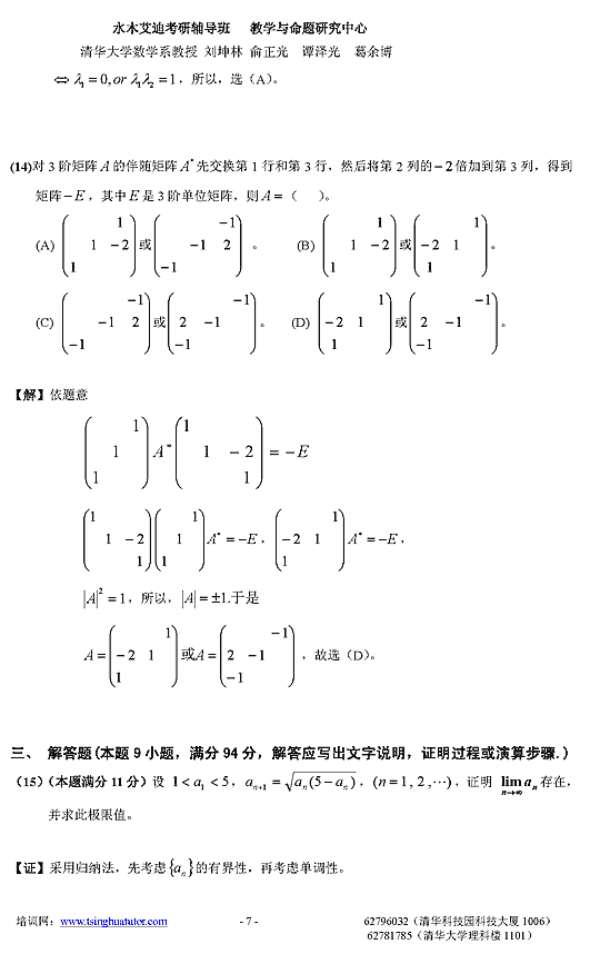 2007年考研数学二模拟测试卷及答案解析(一)7