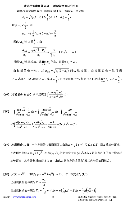 2007年考研数学二模拟测试卷及答案解析(一)8
