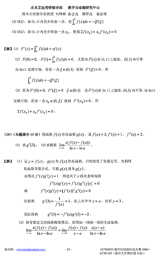 2007年考研数学二模拟测试卷及答案解析(一)10