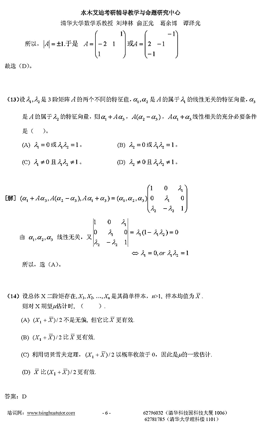 2007年考研数学三模拟测试卷及答案解析(一)6