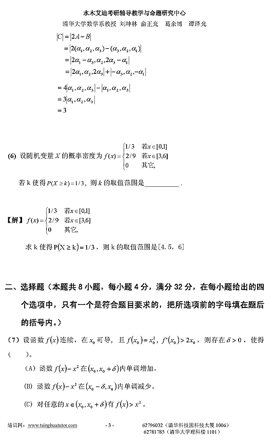 2007年考研数学四模拟测试卷及答案解析(一)3