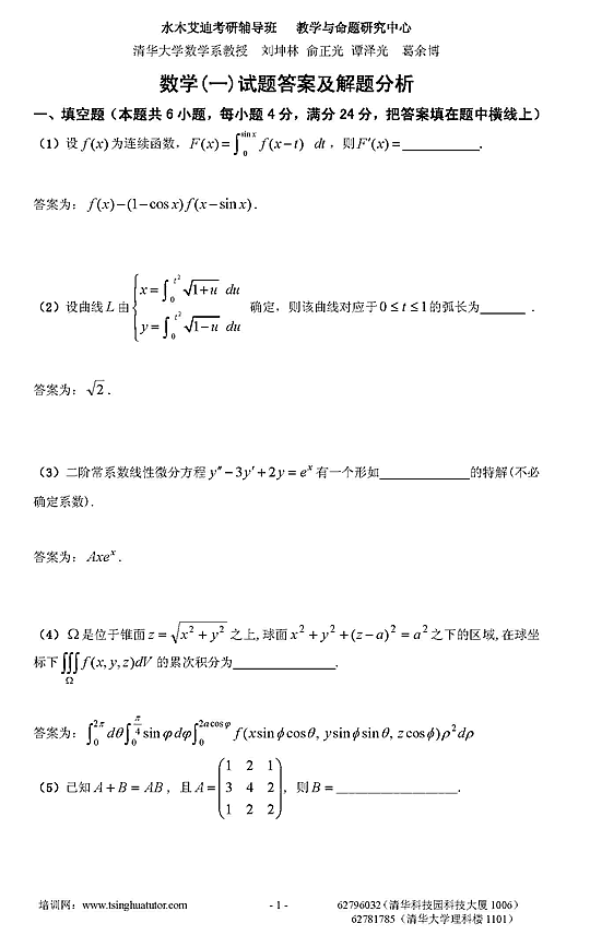 2007年考研数学一模拟测试卷及答案解析(二)1