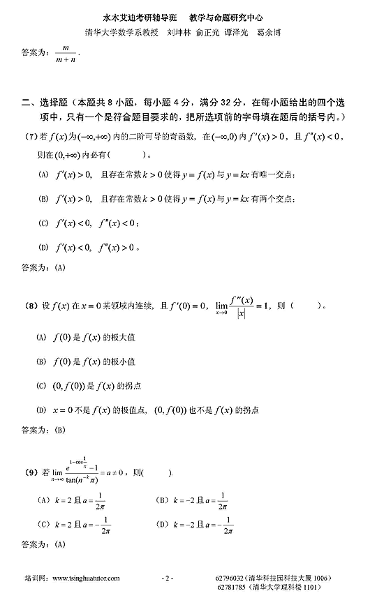 2007年考研数学三模拟测试卷及答案解析(二)2