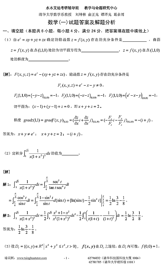 07年考研数学一模拟测试卷及答案解析(三)1