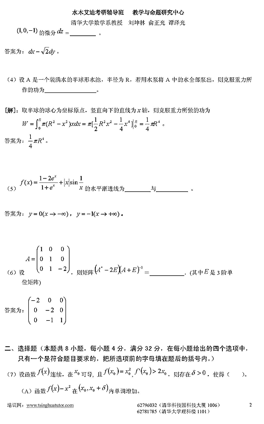 07年考研数学二模拟测试卷及答案解析(三)2