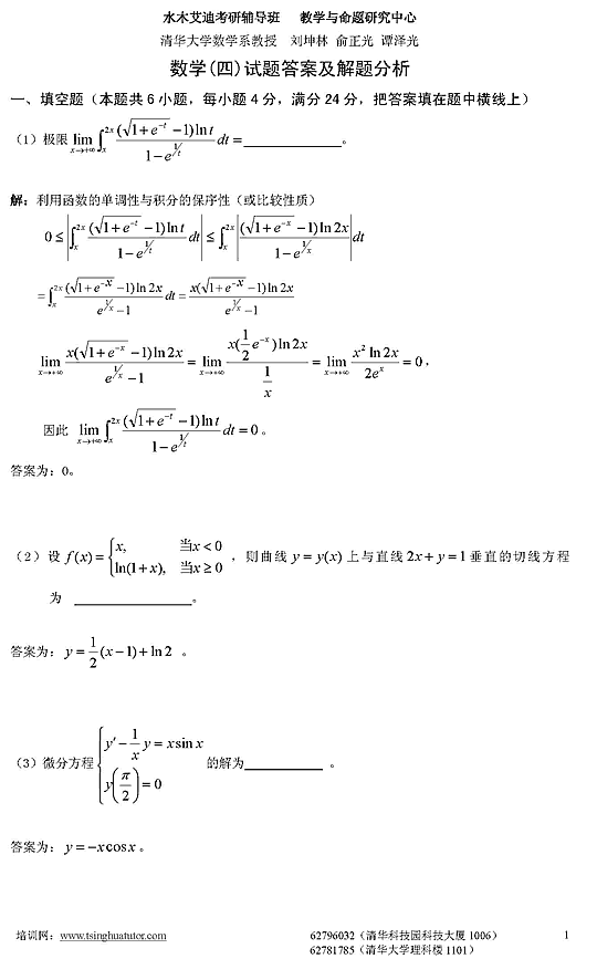 07年考研数学四模拟测试卷及答案解析(三)1