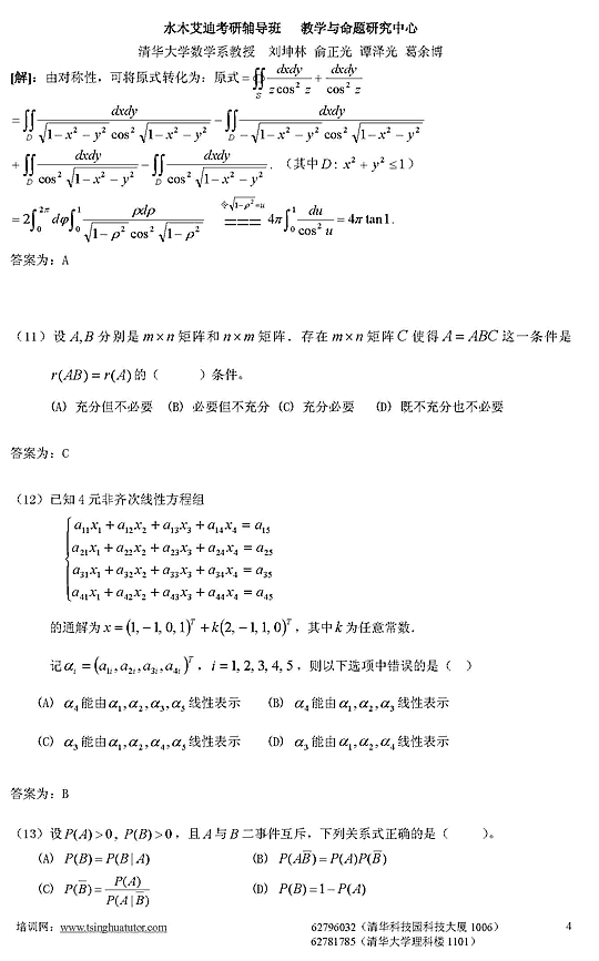 07年考研数学一模拟测试卷及答案解析(四)4