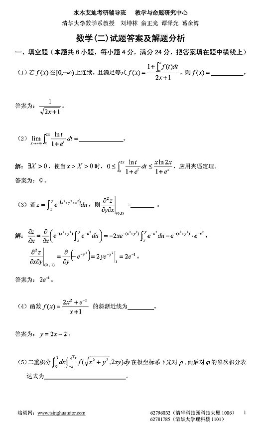 07年考研数学二模拟测试卷及答案解析(四)1