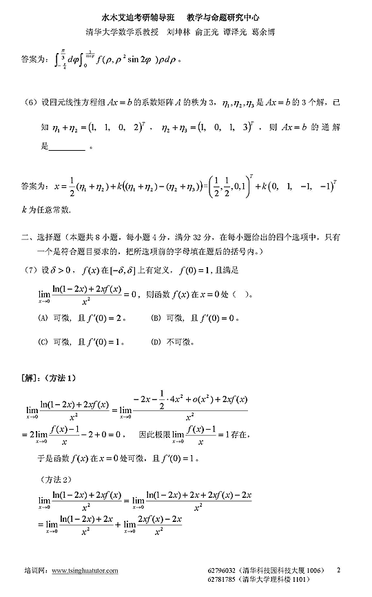 07年考研数学二模拟测试卷及答案解析(四)2