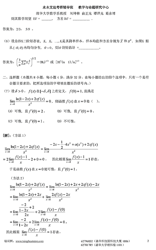 07年考研数学三模拟测试卷及答案解析(四)2